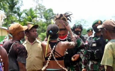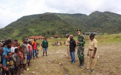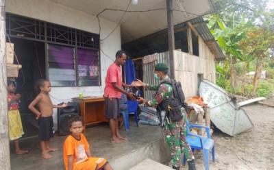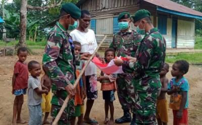 Prajurit Kostrad Bagikan Bendera Merah Putih di Kampung Emete Papua