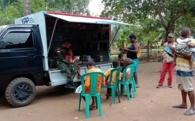 Perpustakaan Keliling Satgas Yonif 125/Simbisa Hadir di Kampung Sota