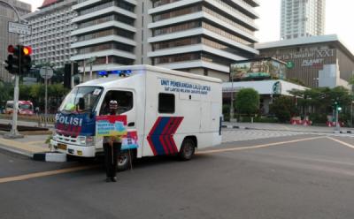 Polisi Bagikan Masker kepada Warga di Bundaran HI