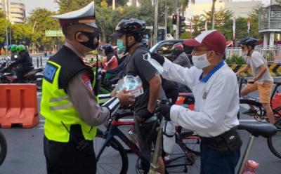 Polisi Bagi-Bagi Masker di Jalan Kebon Sirih