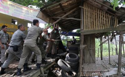 Satpol PP Palembang Bongkar Bangunan Liar Jelang Asian Games XVII