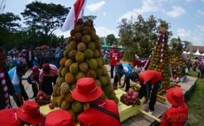 Kemeriahan Sedekah Bumi dengan Gunungan Durian di Lapangan Sumberjambe Jawa Timur