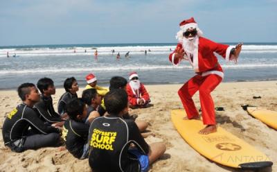 Sinterklas Ajarkan Selancar ke Anak Yatim