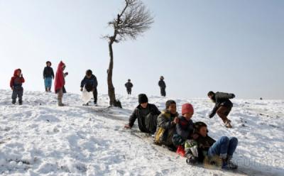 Wajah Ceria Anak-Anak Afghanistan Bermain Seluncur Salju