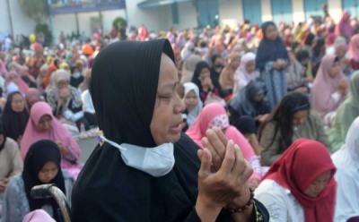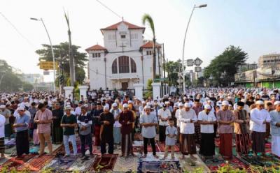 Sholat Idul Fitri di Halaman Gereja Katolik Malang