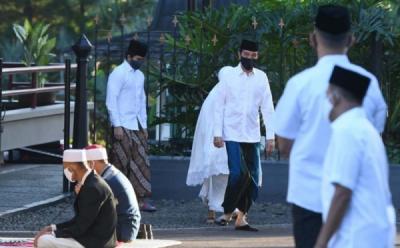 Presiden Jokowi Sholat Idul Fitri di Halaman Wisma Bayurini Istana Bogor