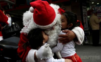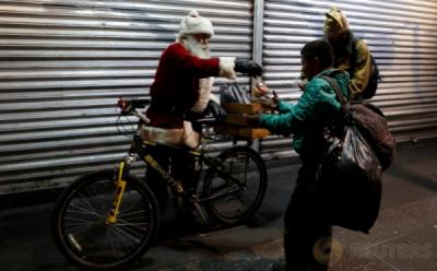 Aksi Sinterklas Bersepeda Bagi-Bagi Permen kepada Warga Meksiko