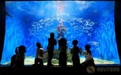 Aksi Sinterklas Bermain dengan Ikan Undang Perhatian Pengunjung Ocean Park Manila