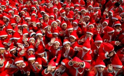Sambut Natal, Puluhan Siswa di Chandigarh India Jadi Sinterklas