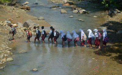 Seberangi Sungai, Begini Upaya Siswa SD di Ciamis demi Bersekolah