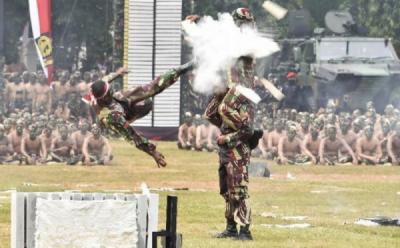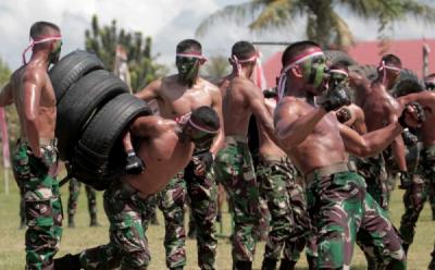Anggota TNI Pamer Perut Sixpack saat Atraksi Spartan Komando