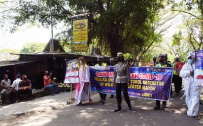 Berkostum Horor, Personel Polres Madiun Sosialisasi Protokol Kesehatan di Kawasan Objek Wisata