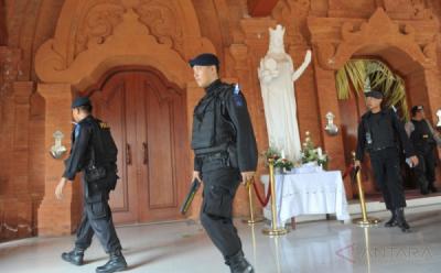 Brimob Polda Bali Sisir Gereja Katedral Denpasar Jelang Kebaktian Malam Natal