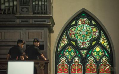 Sterilisasi Gereja Jelang Perayaan Natal di Surabaya