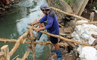 Pekerja Buat Turap Sementara di Aliran Kali Uangan Pesanggrahan