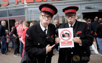 Ekspresi Kocak Suporter Sepakbola Saat Tunjukkan Poster Larangan Memotret