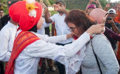 Begini Antusiasme Warga Banda Maluku Tengah Sambut Kedatangan Menteri Susi Pudjiastuti