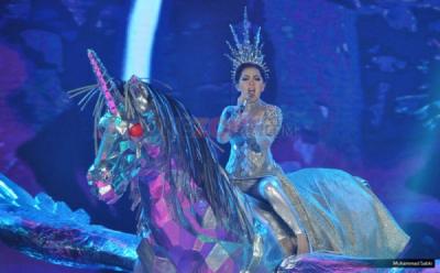 Cover Lagu Katy Perry, Syahrini Tampil Menawan Tunggangi Kuda Pegasus