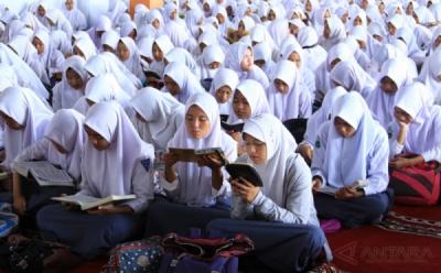 Membentuk Lingkaran, Ribuan Santri Ponpes Ikuti Tadarus Massal di Medan