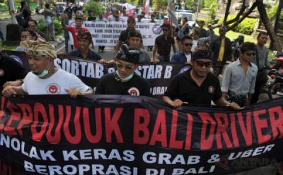 Mematikan Sumber Pedapatan, Ratusan Sopir Taksi Reguler Bali Demo Penutupan Taksi Online