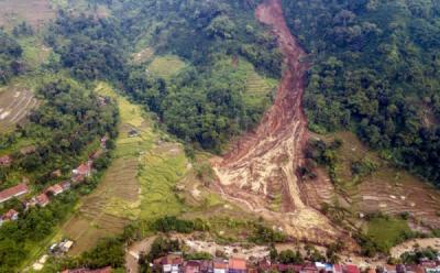 Foto Udara Kondisi Tanah Longsor di Desa Ciherang Sumedang