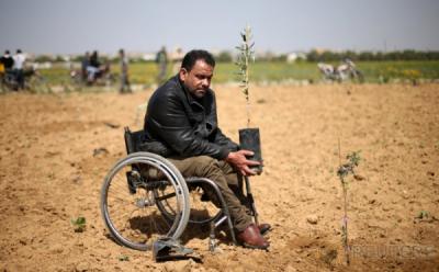 Aksi Mulia Pria Disabilitas Palestina Menanam Bibit Zaitun di Dekat Perbatasan Israel