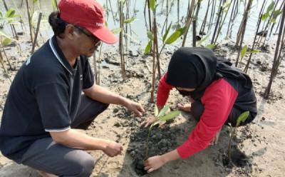 Cegah Abrasi Warga Bersama Relawan Tanam Bibit Pohon Bakau di Pesisir Pekalongan