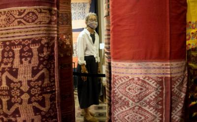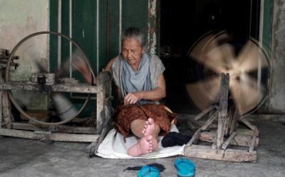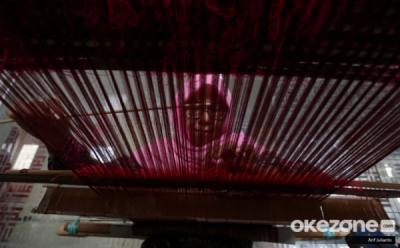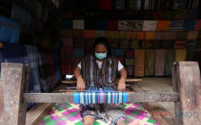Potret Nenek Tua Membuat Kerajinan Kain Tenun dengan Alat Tradisional