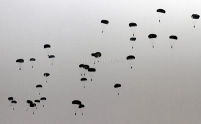 Aksi Terjun Payung Gladi Bersih HUT TNI