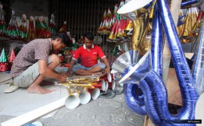 Perajin Terompet Musiman Mulai Jajakan Aneka Terompet di Kota Tua