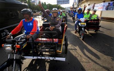 Naik Bentor, Polisi Aceh Kampanyekan Tertib Lalu Lintas