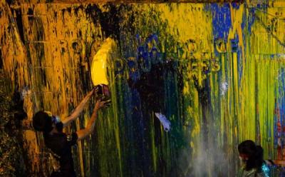 Demonstran Siram Kantor Polisi Bangkok dengan Cat Warna-warni
