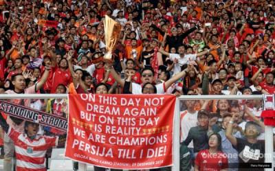 Ribuan The Jakmania Mengoranyekan Stadion Utama Gelora Bung Karno