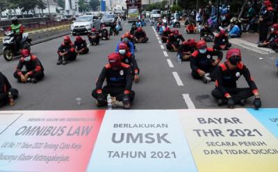 Buruh Turun ke Jalan Tuntut THR Dibayar Penuh