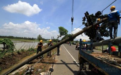 Belasan Tiang Listrik Tumbang
