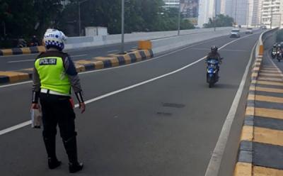 Polisi Tilang Pengendara Motor yang Melintas di JLNT Casablanca