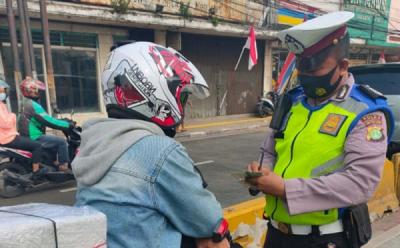 Tak Pakai Helm, Pengendara Motor Ditilang Polisi