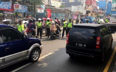 Polisi Tilang Motor dan Angkot yang Masuk Jalur Cepat di Margonda Depok