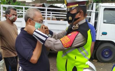Cegah Penyebaran Covid-19, Polri Bagikan Masker kepada Pengemudi Truk