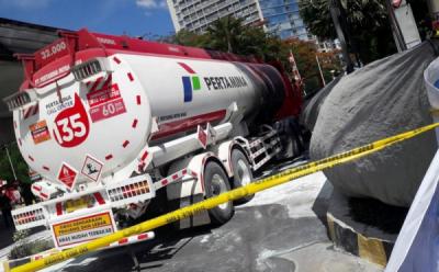 Mobil Tangki Terbakar di SPBU MT Haryono