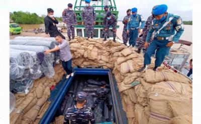 TNI AL Gagalkan Penyelundupan 1.000 Gulung Tekstil di Jambi