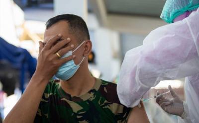 Disuntik Vaksin, Prajurit TNI AL Tutup Matanya