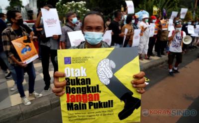 Tuntut Kasus Kekerasan Jurnalis, Wartawan Surabaya Gelar Aksi di Gedung Negara Grahadi