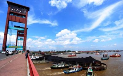 Potret Kapal Tongkang Batu Bara Melintas di Sungai Musi