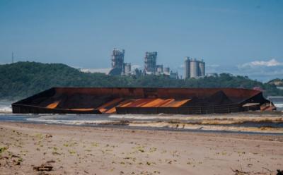 Dampak Cuaca Buruk, Kapal Tongkang Pengangkut Batu Bara Terdampar di Pantai Bayah