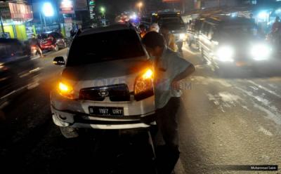 Fortuner Tabrak Pembatas Jalan di Parung