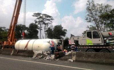 4 Crane Dikerahkan untuk Evakuasi Truk Tangki LPG Terguling