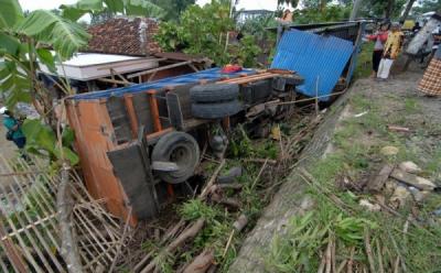Truk Terguling di Pamekasan Timpa Rumah Warga
