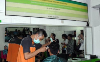 Layani Pelanggan, Tukang Cukur Ini Pakai Jas Hujan