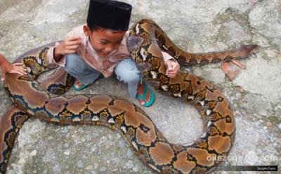 Ketika Ular Piton Berat 100-300 Kg Jadi Teman Bermain Anak-Anak di Desa Gunung Sari Kebumen